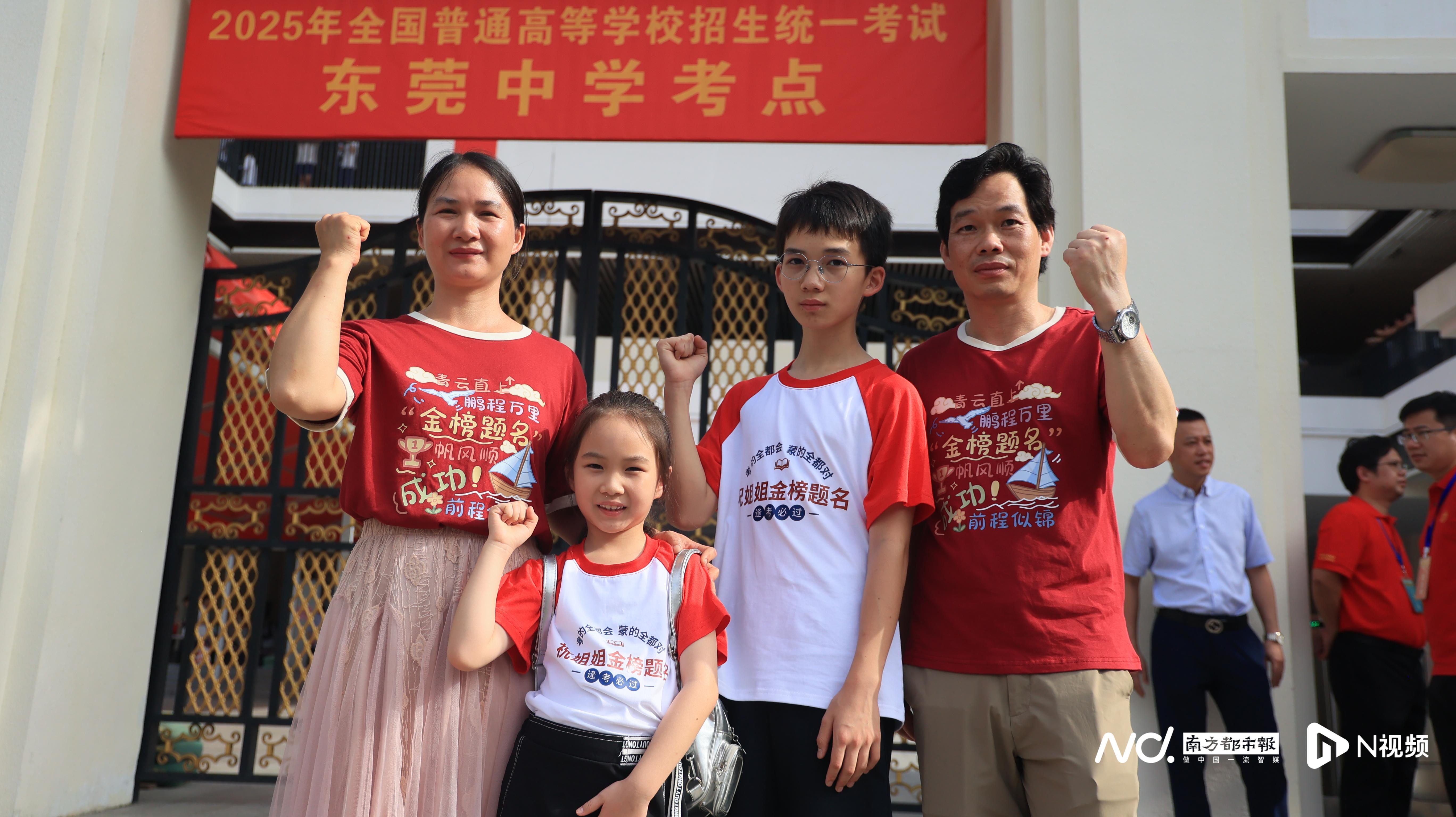 2025年高考正式拉开帷幕。6月7日上午,东莞全市28个考点、1500多个考场,迎来了4.4万名赶考逐梦的考生。南都记者在东莞中学考场看到,考生们步履从容,意气风发踏进人生重要考场。考场外,身着红衣的家长“应援团”,成为送考的一道亮丽风景线。有家长还准备了“985大红包”,希望女儿能够成功考上985大学。